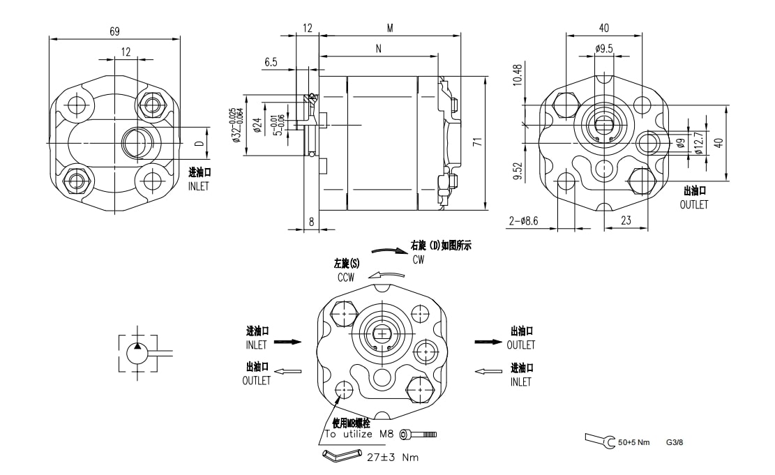 | 0.8 | 230 | 250 | 270 | 6000 | 1000 | 0.76 | 73.5 | 61.5 | 32.8 | L3 | G3/8 | G3/8 |