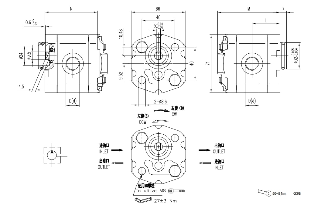 | P1 | P2 | P3 | M | L | B | D | H | b | d | h | |||||