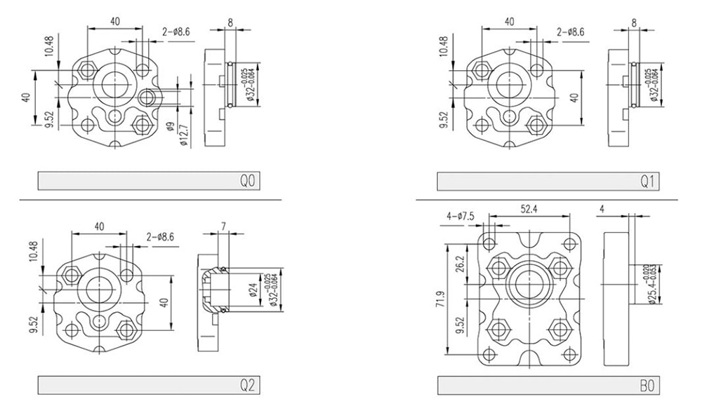 | Deslocamento | Pressão máxima | Velocidade máxima | Velocidade mínima | Peso | Dimensões | Código de porta de óleo | Entrada | Saída | |||||||
