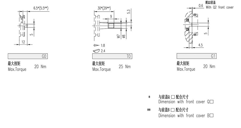 | 5.8 | 190 | 210 | 230 | 3000 | 600 | 1.156 | 102 | 43 | E0 | 30 | 12 | M6 | 30 | 12 | M6 |