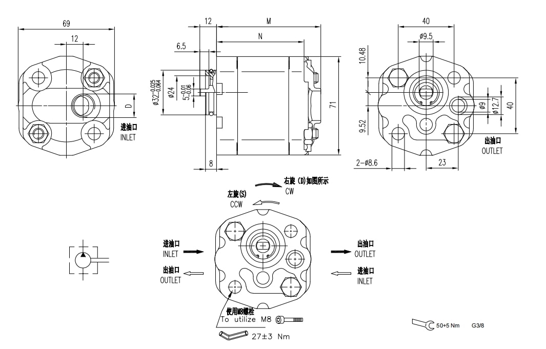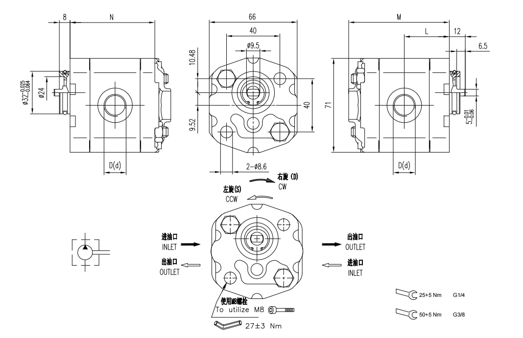 | 2.5 | 230 | 250 | 270 | 4000 | 800 | 1.2 | 90.9 | 85.6 | 46.9 | Z3 | M16X1.5 | M16X1.5 |