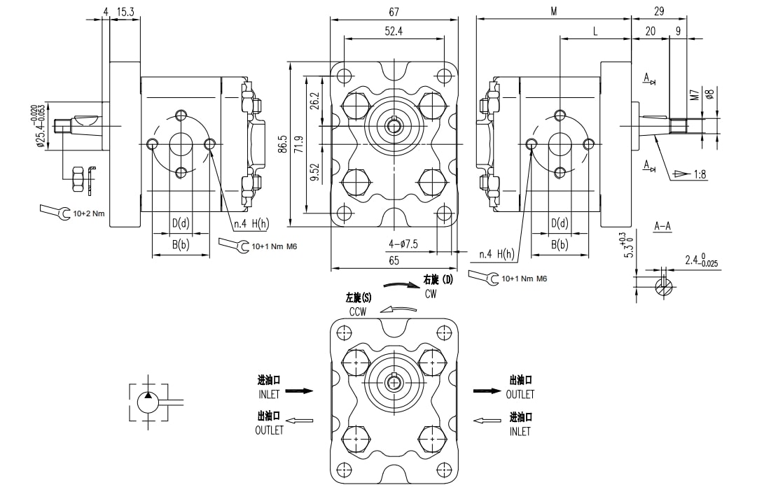 | 6.5 | 200 | 220 | 240 | 3000 | 700 | 1.75 | 07.8 | 102.5 | 55.4 | Z1 | M18X1.5 | M18X1.5 |