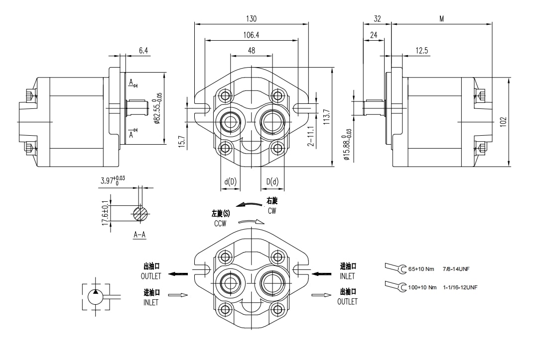 |  16  |   250  |   265  |   280  |   3500  |   500  |   4  |   112.7  |   54.4  |   U0  |   1/16-12UNF  |   7/8-14UNF  |