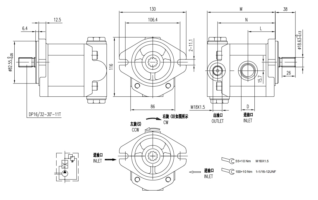 |  16  |   250  |   265  |   280  |   3500  |   500  |   4  |   112.7  |   54.4  |   Z1  |   M20X1.5  |   M18X1.5  |